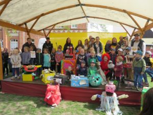 Die Gewinner des Mülli-Müllfresser-Wettbewerbs stehen fest: Mülli Mampffred aus der Kita „Waldesrand“ in Grieben, der knallbunte Alfi Abfallfresser von der Wichtelgruppe der Kita Klosterschulplatz in