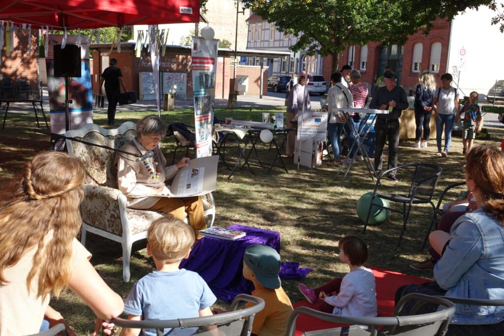 Eröffnung: Projektkoordinatorin Gerda Schwander übergibt das Mikro an Stendals OB Bastian Sieler.Landwirt Michel Allmrodt aus SchönwaldeMichel Allmrodt hielt den EinführungsvortragPodiumsdiskussion zur ArtenvielfaltAngeregte Gespräche nach der DiskussionForstamtsleiterin Katja Döge im Gespräch mit Staatssekretär Dr. EichnerDer Kuchen von Andrea Thom war gefragt.Das Kuchenbufett zog auch OB Bastian Sieler und seinen Tochter an.Lecker: Pommes aus regionalen Kartoffeln vom Förderverein der Kirche St. Nicolaus BeusterBlick über den WinckelmannplatzCO2-online aus Berlin informierte zur Einsparung von CO2Julia Gebhard von CO2-online Die Marktgärtnerei Mikrokosmos stellte ihr Projekt vor.Die Deichimkerei Spillner war mit Honig und Marmeladen dabei.Infostand zum Grünen Band in Nachbarschaft des Salzwedeler Bioladens GrünlandEvelin Krug (l.) vom Nähstübchen Salzwedel mit Mode aus recycelten StoffenDie Lavendelfrauen aus der Kleinen Markthalle boten Lavendelsäckchen und andere Näharbeiten an.Attraktiv verpackte Anregung der Lavendelfrauen: Kastanien und Efeu als Waschmittel.Yvonne Rießmann von MY Unverpackt mit umweltfreundlichen ProduktenSophie-Charlotte Sasse und Marcus Schünemann machten Musik.Stimmungsvolle Klänge ließen die Festivalgäste Verweilen.Spielspaß für die JüngstenDie Tischtennisplatte vom MAD-Club kam gut an.Kinderschminken mit nachhaltigen Farben und NaturmotivenLaura aus Schmersau verzauberte die Kinder.Naturgarten-Profi Christian Feißel informierte zu naturnahen Gärten und BalkonenDer Bioladen Grünland aus Salzwedel war mit Getränken und Infomaterial dabei.Blickfang: Waldameise Waltraud Sebastian Naumann stellte den regionalen Online-Markt „Hallo Altmark“ vor.Landeszentrum Wald, BNE und das JWH Arendsee mit kreativen Angeboten……z. B. Malen mit Erdfarben und Basteln von SamenkugelnDas Landeszentrum Wald stellte den Waldboden (Boden des Jahres) in den Mittelpunkt.Fitnesstrainerin Tina Ohnesorge bot Zirkeltraining an.Dazu gehörten ziemlich große Hula-Hoop-Reifen.Bei Ernährungsberaterin Juliane Richter aus Osterburg gab es u. a. selbstgemachte Dips zum Probieren……und jede Menge Informationen.Christina Kloss aus Seehausen beim Vorlesen für Kinder.Die Lesung beschäftigte sich kindgerecht mit der Frage: Biodiversi-was?Am Infostand Biosphärenreservat Mittelelbe waren Mein BioRind aus Groß Garz……und mannuš feine kost manufaktur aus Heeren vertreten.Das LeseLand (Salzwedel) baute einen Bücherstand zum Thema Biodiversität auf.Mundschenk Enrico kam mit seinem Vino-Velo-Popup.Bei der Naturkostsafterei Voelkel konnte man sich durchprobieren.Unser Team bedankt sich bei allen, die dabei waren und geholfen haben: Gerda Schwander und Inga Papke (Projektkoordination), David Messner, Dörthe Müller, Marion Zosel-Mohr (v. l.)