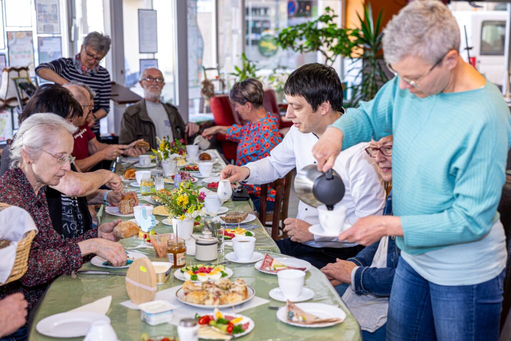 Zum monatlichen Markthallen-Frühstück ist am 16. April 2025 Patrick Puhlmann der Einladung der Freiwilligen-Agentur Altmark gefolgt. Dabei kam der Landrat nicht mit leeren Händen, sondern hatte Kaffee und Kuchen mitgebracht. Etwa ein Dutzend Interessierte saßen am gedeckten Tisch, an dem Puhlmann zunächst etwas zum Format dieses Frühstücks erfuhr.