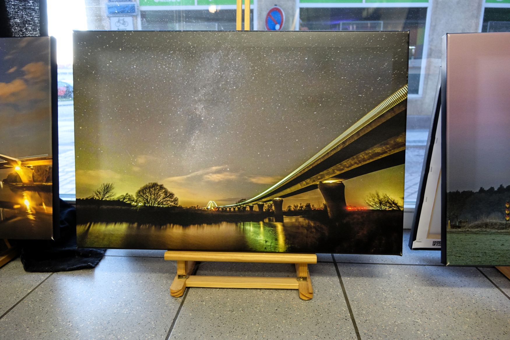Elf Astrofotografinnen und -fotografen aus Altmark und Wendland zeigen ihre Kunst, mit der Kamera ins Weltall zu blicken – entweder sehr tief, wie Christopher Schramm – oder mit einem Motiv im Vordergrund, von dem sich der nächtliche Himmel abhebt. Beim Tangermünder Jens Ernst beispielsweise ist es die Elbebrücke, der Stendaler Rainer Konrad wählte die Aussichtsplattform in Arneburg. Dem Osterburger Jakob Lessing gelang am Galgenberg in Polkern eine Aufnahme der fast senkrecht stehenden Milchstraße mit interstellarem Staub. Andere Fotografen setzen die Sterne im Zusammenspiel mit Bockwindmühlen, uralten Eichen oder dem Großsteingrab in Stöckheim in Szene. Belichtungszeiten spielen bei dieser Art der Fotografie eine besondere Rolle, und wer es ganz genau wissen möchte, findet in der Kleinen Markthalle einen Katalog mit technischen Angaben.