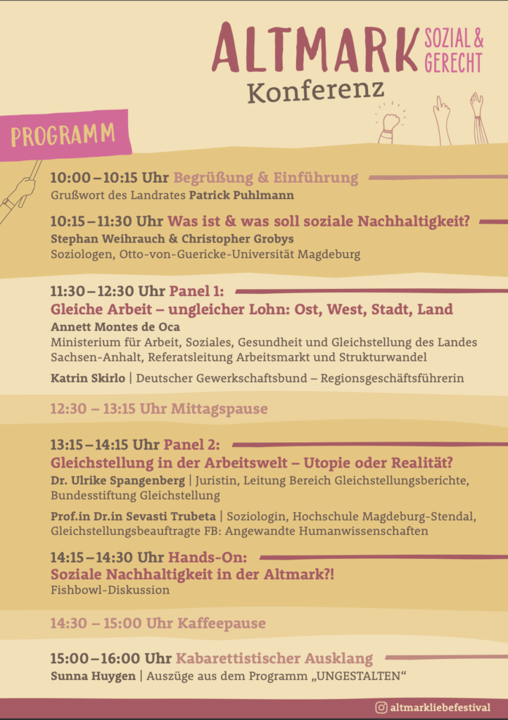 Die Altmarkkonferenz Sozial & Gerecht im Auftrag des Ministeriums für Wissenschaft, Energie, Klimaschutz und Umwelt Sachsen-Anhalt ist für alle Interessierten offen und kostenlos.