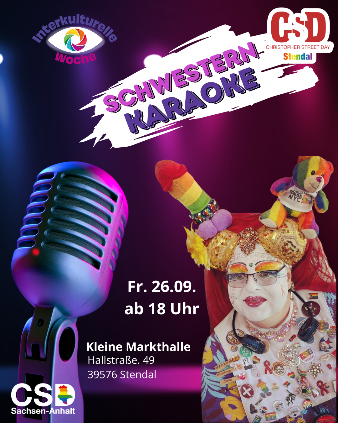Ab 18:00 Uhr verwandeln wir die Kleine Markthalle (Hallstr. 49, 39576 Stendal) in einen queeren, bunten, lauten und absolut fröhlichen Ort voller Musik, Spaß und Begegnung.