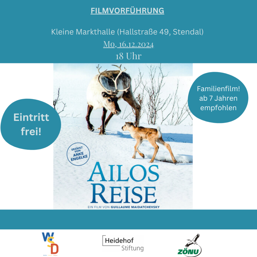 Passend zur Weihnachtszeit zeigt das ZÖNU in der Kleinen Markthalle am Montag, 16.12.2024 um 18 Uhr den Familienfilm „Ailos Reise“ (2018). Dabei wird das Rentierjunge Ailo ein Jahr lang bei seinen Abenteuern begleitet – ein Spaß für die ganze Familie. Der Eintritt ist kostenlos! Ailos Reise folgt der beeindruckenden Wanderung eines neugeborenen Rentiers und seiner Herde in der wilden und majestätischen Natur Lapplands. Während der einjährigen Odyssee über hunderte Meilen durch die gefrorene Taiga, durch vom Eis eingeschlossene Wälder, von den imposanten Fjorden zu den höchsten Gipfeln, trifft Ailo auf Polarfüchse, Lemminge, Adler, Wölfe, Eichhörnchen und Hermeline. Ein Abenteuer für Groß und Klein (für Kinder ab 7 Jahren empfohlen).