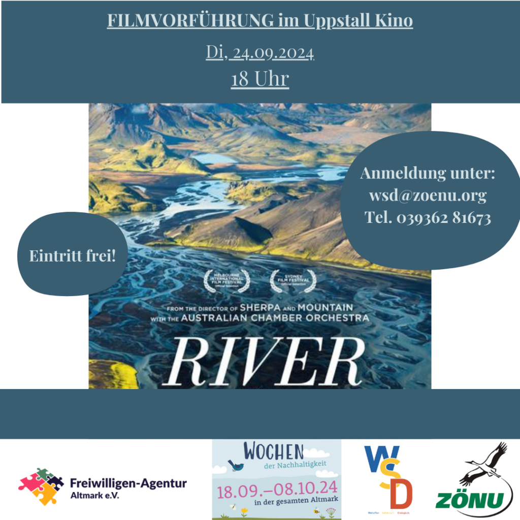 Das ZÖNU Buch lädt zum Film „River“ ein. Es geht um die Beziehung von Mensch und Fluss, anschließend gibt es die Möglichkeit zur Diskussion