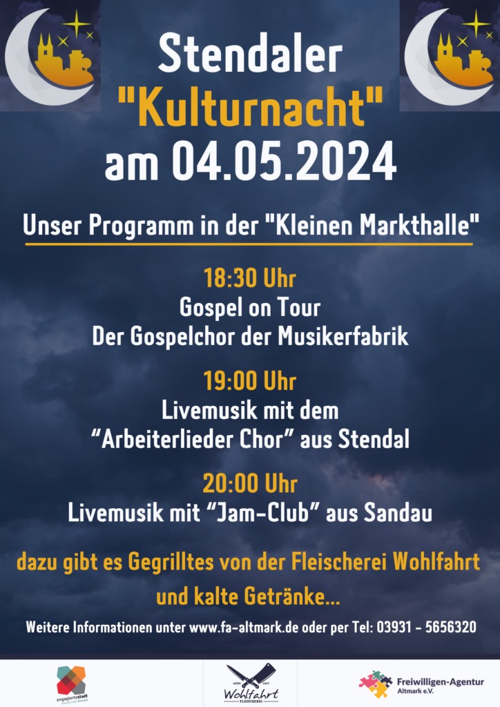 14 Stationen laden am Sonnabend von 18.00 bis 23.00 Uhr zum Nachtschwärmen ein. Unsere Kleine Markthalle ist eine davon! Bei uns gibt’s viel Musik und eine große Tanzfläche!