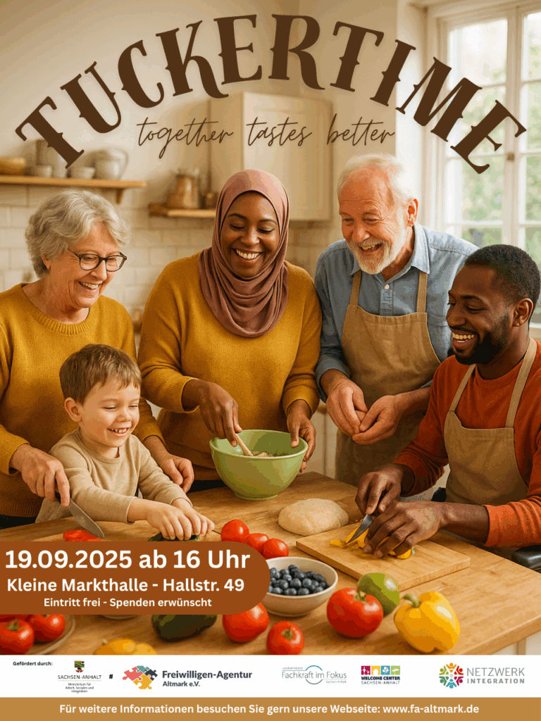 Erleben Sie kulinarische Köstlichkeiten, inspirierende Begegnungen und ein buntes Programm, das Menschen verbindet. Diese Veranstaltung ist eine Kooperation zwischen dem Welcome-Center, dem Netzwerk Integration und der Freiwilligen-Agentur Altmark e.V. – gemeinsam setzen wir ein Zeichen für Zusammenhalt und interkulturellen Austausch.