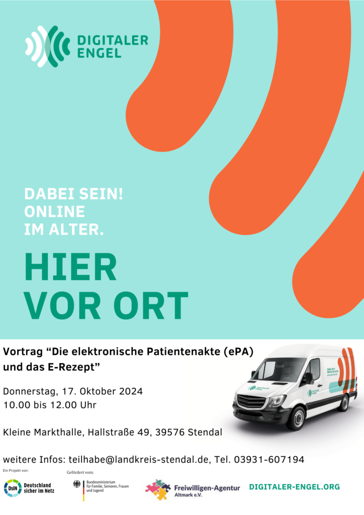 Gemeinsam mit dem Örtlichen Teilhabemanagement des Landkreis Stendal organisiert „Digitaler Engel“ für Sie unsere Informationsveranstaltung zu dem Thema: E-Rezept und elektronische Patientenakte.
