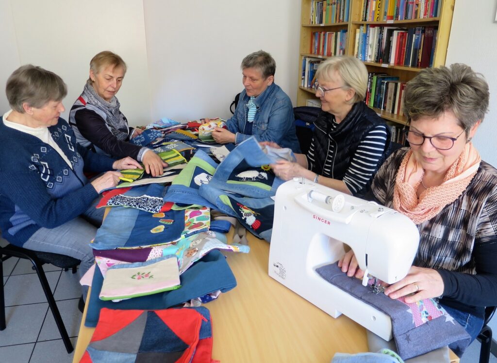 Weder Zeit noch Geschick für Handarbeit, aber auf der Suche nach einem individuellen, handgemachten Weihnachtsgeschenk? Die Nähfrauen aus der Kleinen Markthalle können helfen. Bei einem vorweihnachtlichen Basar bieten sie am Donnerstag, 14. Dezember, ab 16.00 Uhr eigene Kreationen an. Darunter sind wunderschöne Einkaufs-Beutel, die sich auch für Aktenordner eignen, Umhängetaschen, Decken und Topflappen in Patchworktechnik und allerlei andere Kleinigkeiten. Nicht zu vergessen Utensilos in verschiedenen Größen. Diese aus Doppel-Stoff genähten „Körbchen“, z. B. für den Frühstückstisch, das Bad oder das Büro, lassen sich mit allerlei Dingen füllen.