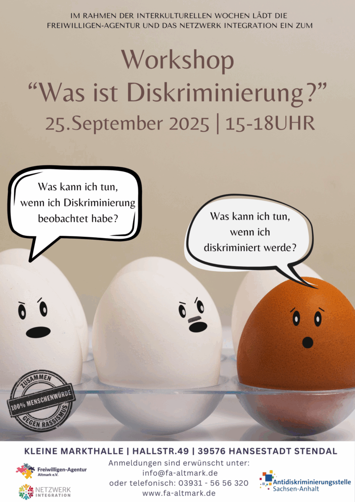 Dieser Workshop wird von der Antidiskriminierungsstelle Sachsen-Anhalt durchgeführt und ist für Sie kostenfrei.