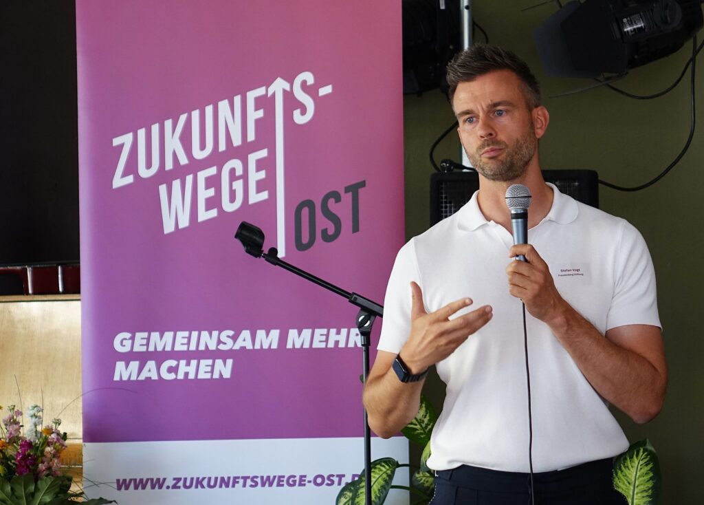 Zeit für den Roundtable „Engagiert für Demokratie – Zukunftswege Ost in der Altmark“ nahmen sich auch die Landräte des Landkreises Stendal und des Altmarkkreises Salzwedel, Patrick Puhlmann und Steve Kanitz, Stendals Oberbürgermeister Bastian Sieler und Salzwedels Bürgermeister Olaf Meining. Stendals Landrat fragte nach, wie verbindlich die geplante Kooperation von Zukunftswege Ost mit der Altmark sei. „Sehr verbindlich“, antwortete Stefan Vogt von der Freudenberg-Stiftung. Eine Rolle spiele dabei auch das große Potenzial an gemeinnützigen Initiativen in der Region, die demokratische Werte fördern.